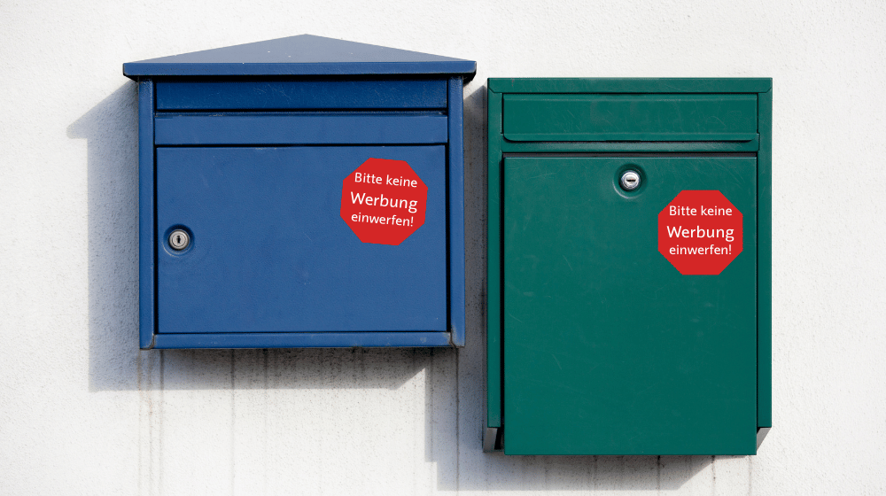 Bringe einen Hinweis an deinem Briefkasten an, dass du keine Werbung erhalten möchtest und hilf so mit, Ressourcen zu sparen!